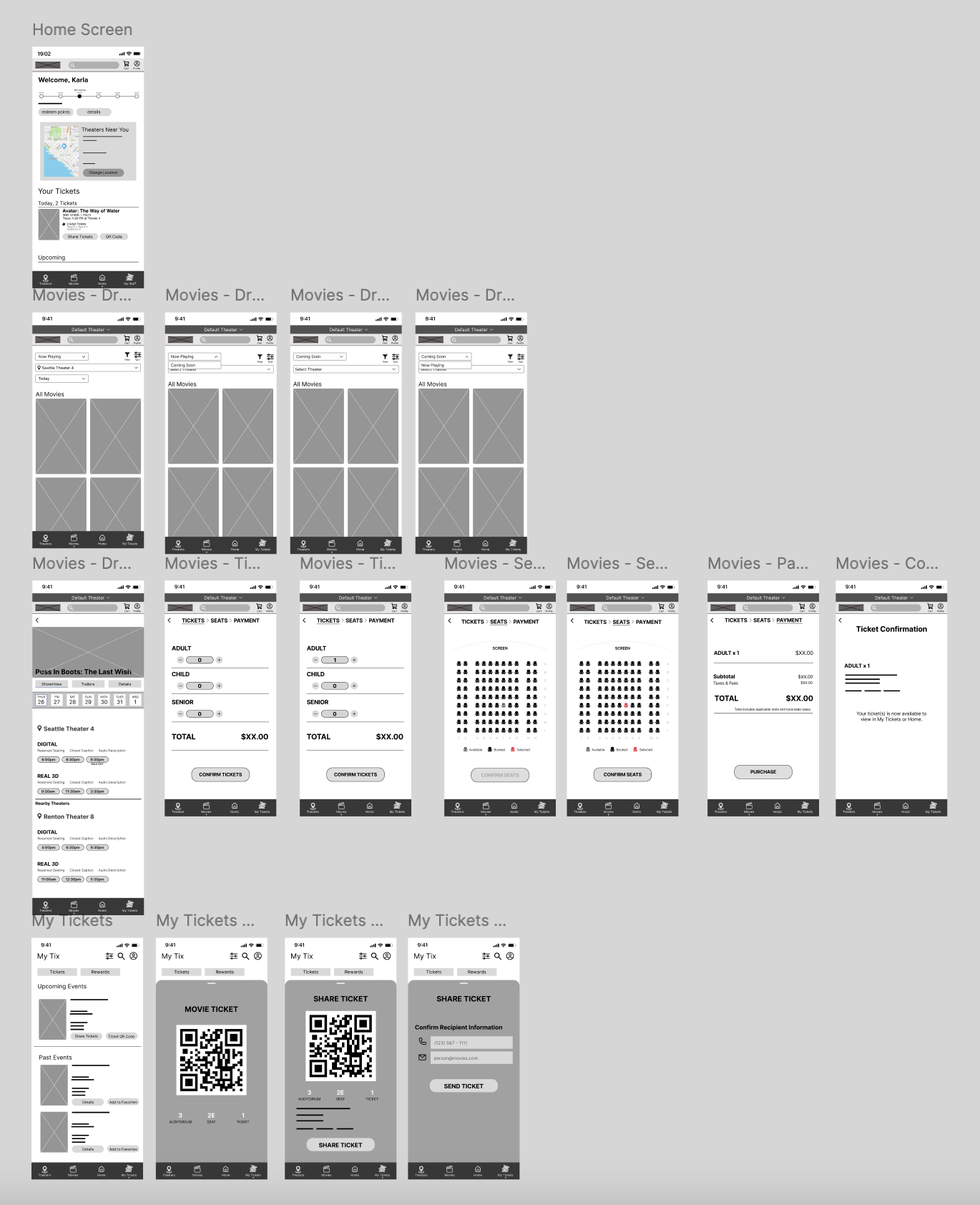 While there remains a multitude of movie ticketing apps, the ability to find, purchase, and share tickets across different movie theaters are central to the main function of the app. I have based my designs to meet these user-centered features.