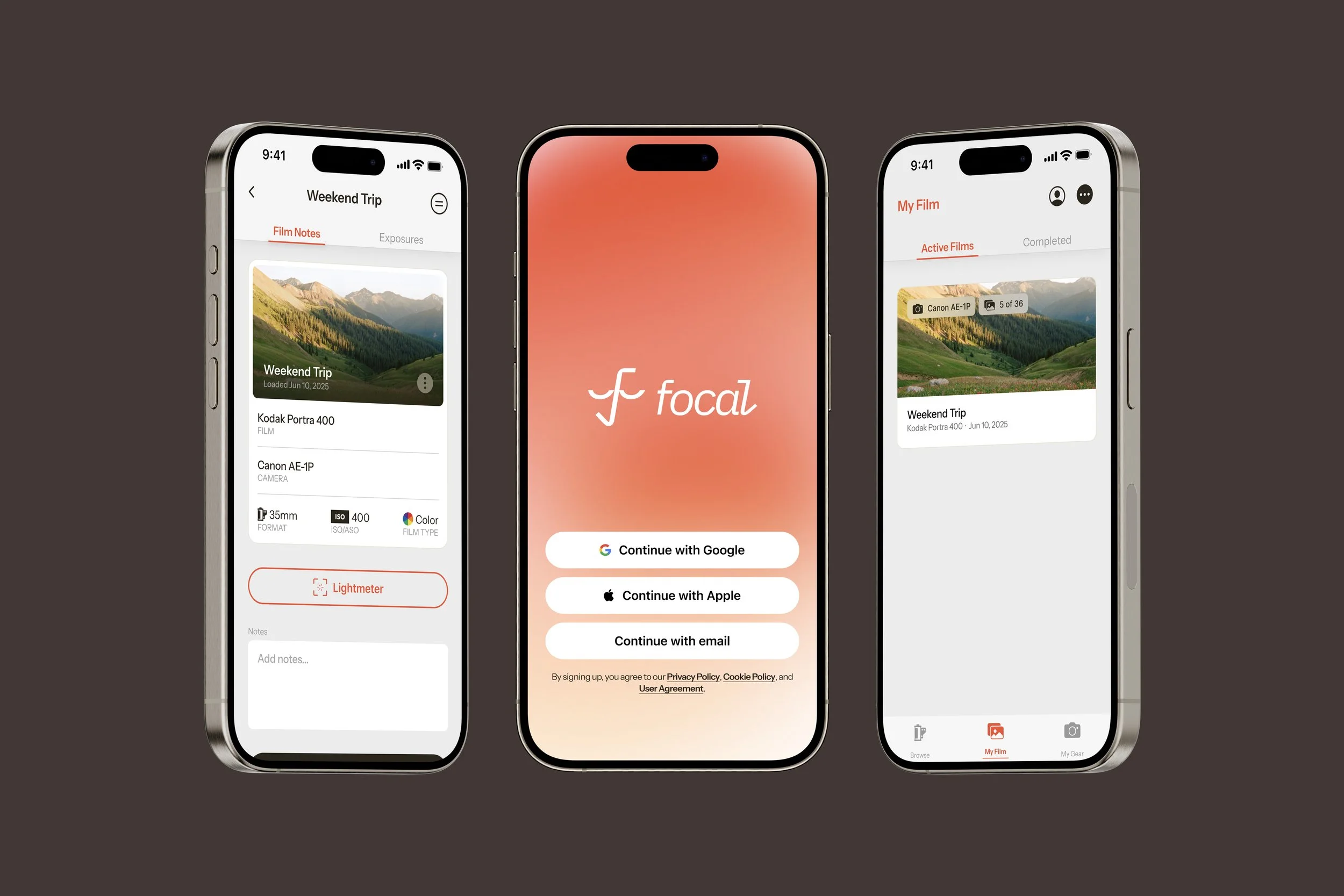 Focal is a mobile app designed for film photographers to digitally manage and document their film shooting process. Users can log each active film roll as a dedicated album, where they store detailed notes, exposure settings, and attach live reference photos to specific exposure counts—helping them remember each shot’s context, since film images aren’t instantly viewable. The app also features a built-in light meter that uses the phone’s camera to measure and record aperture, shutter speed, and ISO/ASA settings, allowing photographers to capture and save these details alongside their notes for easy reference during and after shooting.