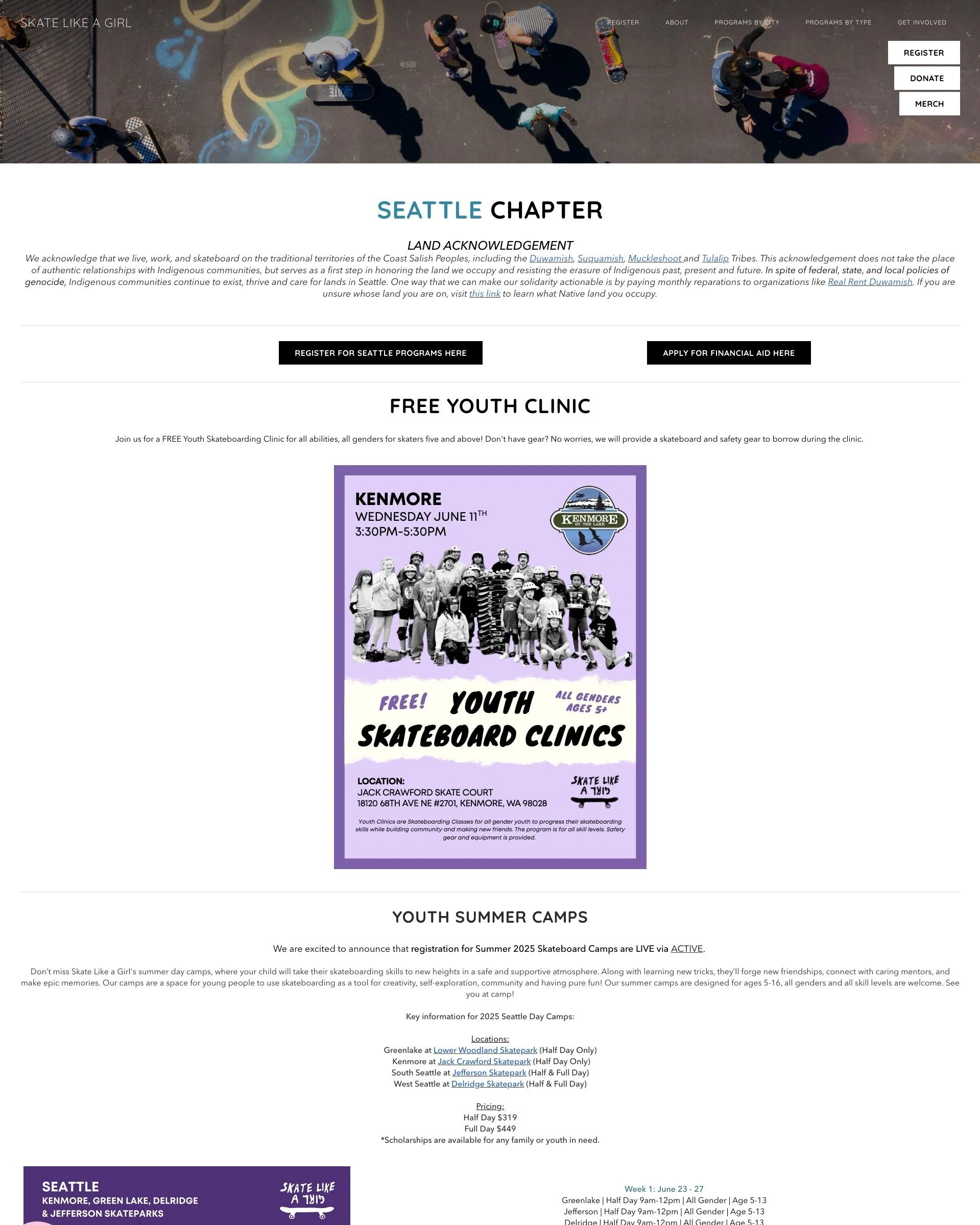 The Seattle Chapter and its main call to actions (Register, Apply for Financial Aid) are separated